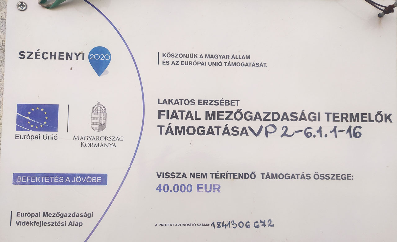Vállalkozásom fejlesztésére a SZÉCHENYI 2020 Vidékfejlesztési területen kiírt pályázatra támogatási kérelmet nyújtottam be 2017. évben, melyet a Magyar Államkincstár jóváhagyott.